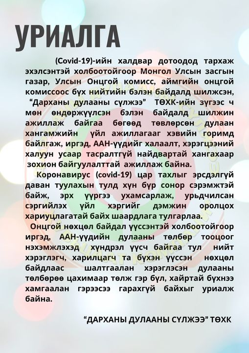 ДАРХАН-УУЛ АЙМГИЙН ШИГШЭЭ БАГ ДӨРӨВ ДАРААЛЛАН ТҮРҮҮЛЛЭЭ